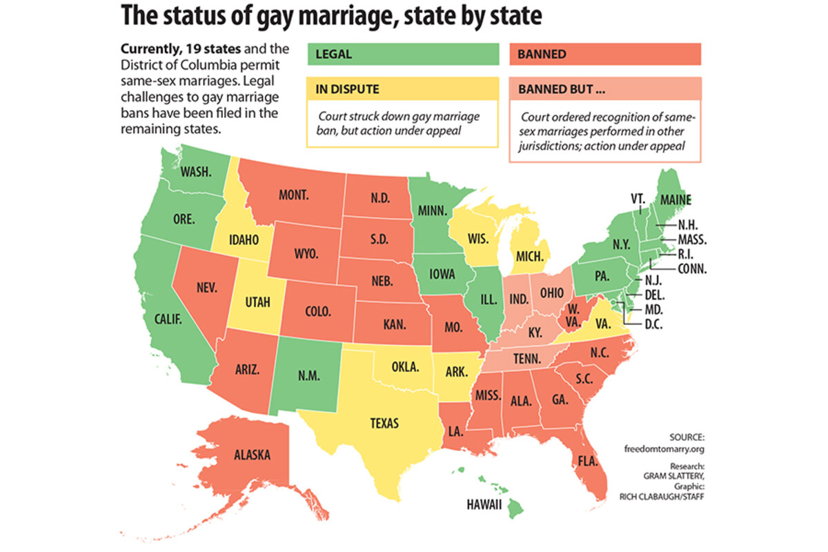 The results have been swift and one-sided: Within the past year, state statutes and constitutional amendments banning gay marriage have been struck down as unconstitutional in 13 states.
