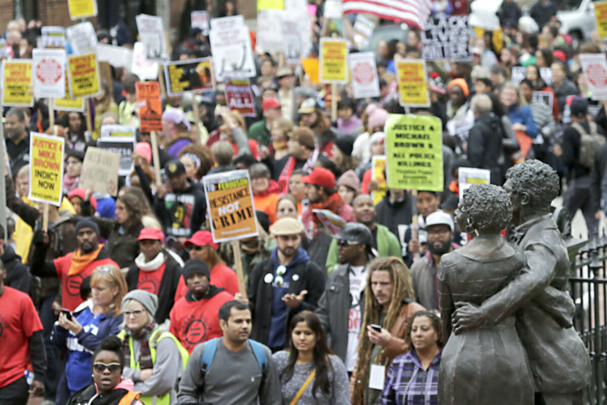 The shooting of Brown brought to a boil long-simmering racial tensions that protesters say extend far beyond St. Louis, a place that critics say has yet to fully reckon with a legacy of discrimination and oppression in its zoning laws and policing practices.