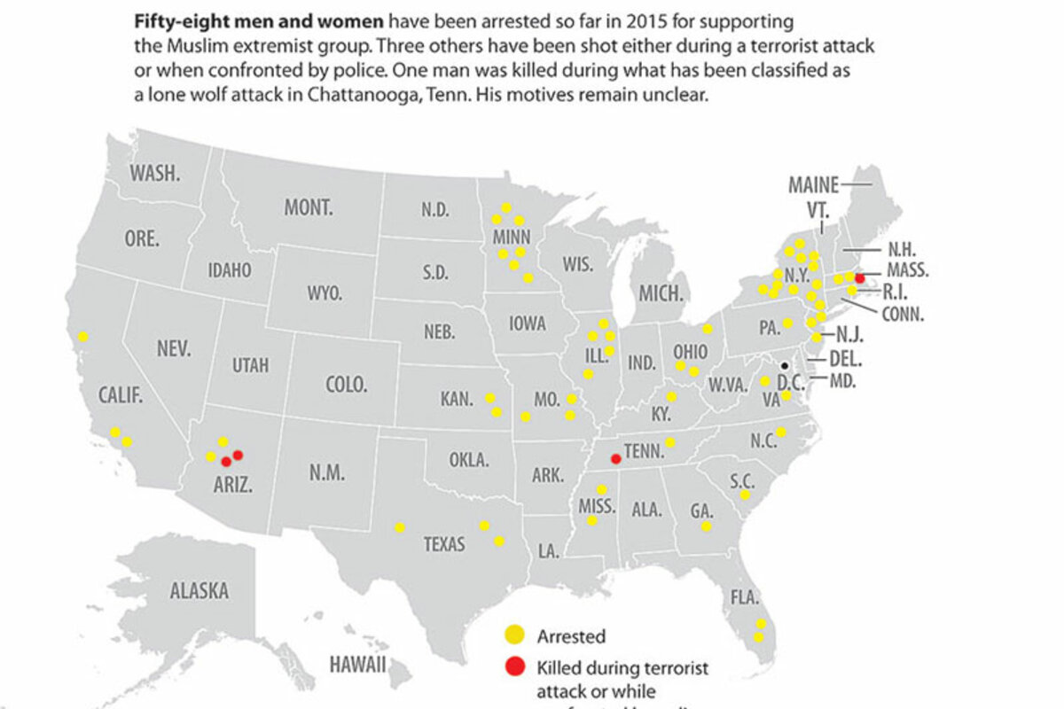 So far this year, 58 Americans 鈥 more than half under 25 鈥 have been arrested for attempting to travel to Syria or for plotting violence in the US. That is more than twice the number of similar arrests for the entire year in 2014, and more than twice the number for all of 2013, as well.