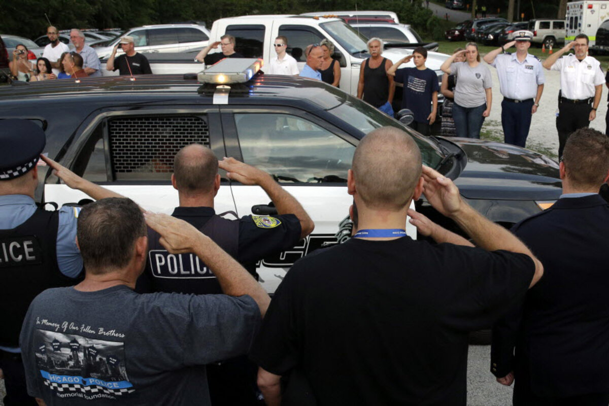 On Sept. 1, Lt. Charles Joseph Gliniewicz radioed in that he was in pursuit of three males on foot. Responders lost contact with the cop but police officers later found him聽about 50 yards from his squad car聽with a fatal gunshot wound and聽his .40 caliber handgun nearby, in a marsh near the Wisconsin border.