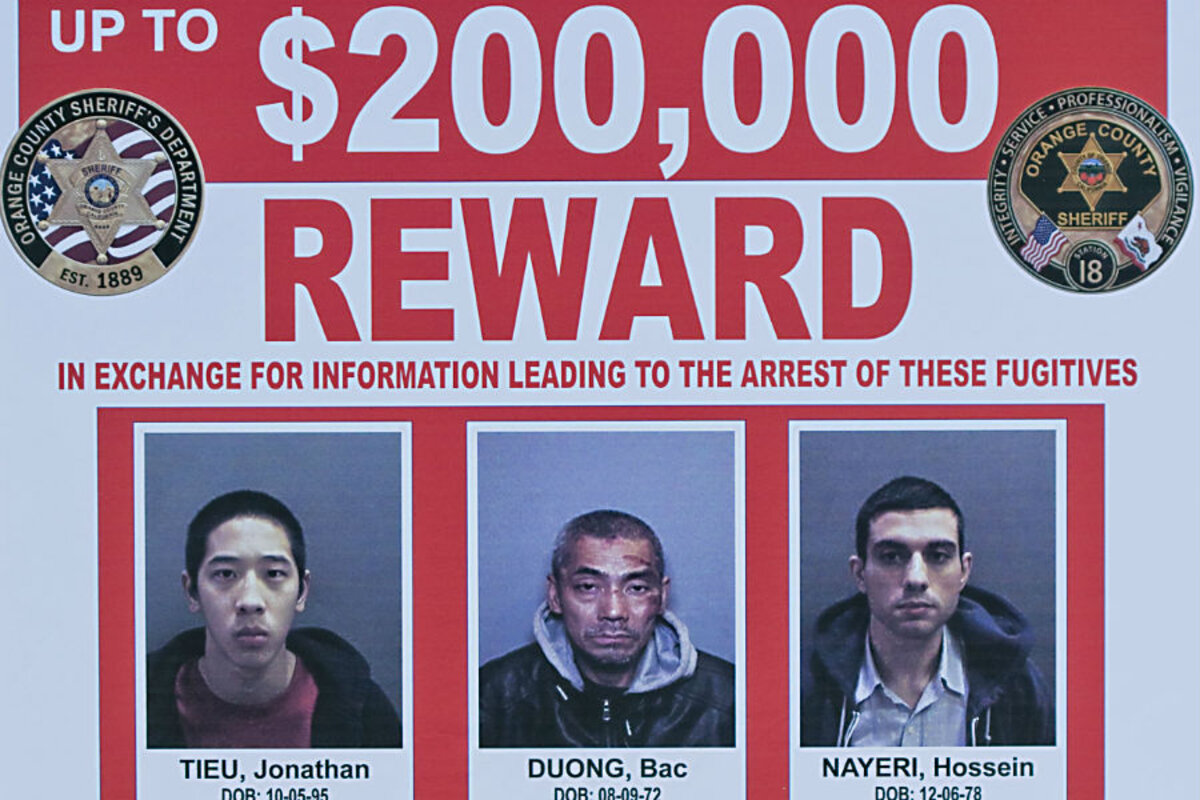 Authorities had been hunting for Tieu, Nayeri and a third inmate, 43-year-old Bac Duong, in Southern California since they pulled off a brazen jail escape Jan. 22.