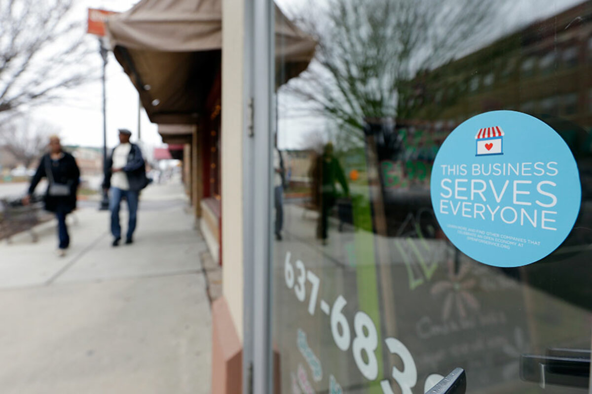 In states like Mississippi, with no antidiscrimination law, gay rights advocates launched a campaign to encourage LGBT-friendly companies to display a sticker on their door or front window. The sticker announces: “We don’t discriminate: If you’re buying, we’re selling.”