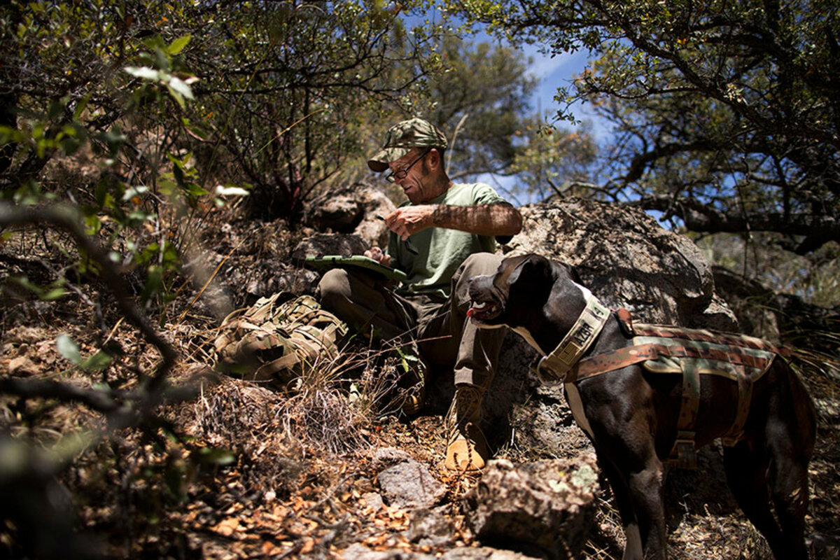 Tim Foley runs a group called Arizona Border Recon in Sasabe, Ariz. The organization conducts armed, civilian patrols near the US-Mexico border. He says he has placed 12 motion-activated cameras near well-traveled smuggling trails leading from Mexico into the US.