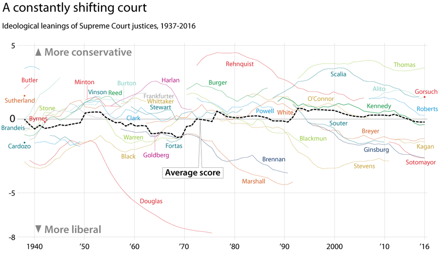 But will any (or all) of this affect how the public views the court and its purpose? Voter approval of the Supreme Court has been slumping for years, in step with the decline in trust of virtually all United States institutions. What happens if the members of the court, in the public mind, morph into pure politicians, predictable Democrats or Republicans who happen to be wearing robes?
