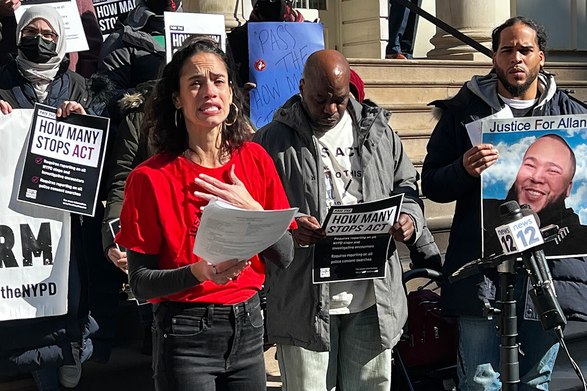 鈥淲e鈥檝e seen time and time again how routine police stops have ended tragically,鈥 says Alexa Avil茅s, a member of the New York City Council, speaking at a rally in front of City Hall calling for the NYPD to provide more data about its day-to-day methods and interactions with people on the street. 鈥淲hen is enough ever going to be enough? ... We want to know, with taxpayer dollars, are they doing the job that we are trusting them to do in the public?鈥