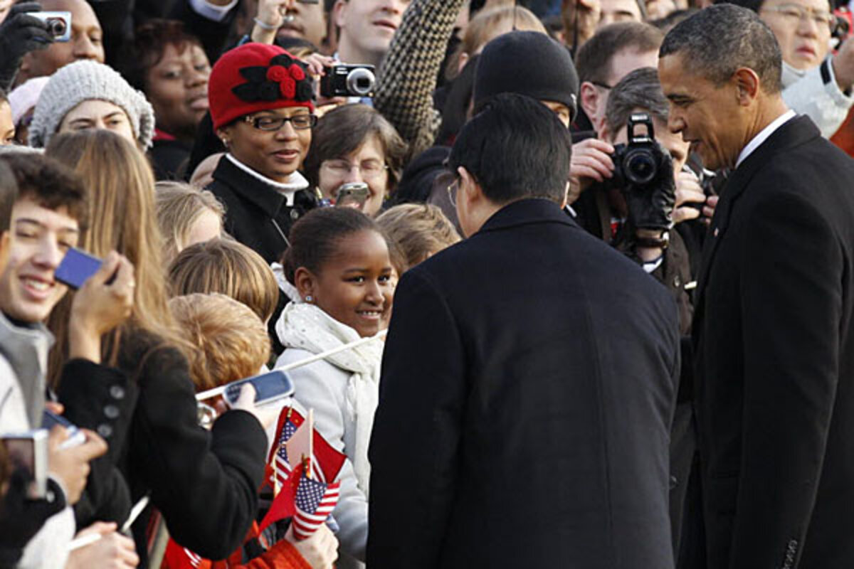 Sasha attended Hu's welcoming ceremony on the White House lawn on Wednesday morning with friends and could be seen waving a Chinese flag excitedly as her father and Hu walked around the grounds.