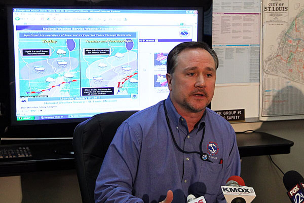 St. Louis-based utility company Ameren opened its emergency operations center amid worries that the weight of the ice and snow could bring down trees and power lines.