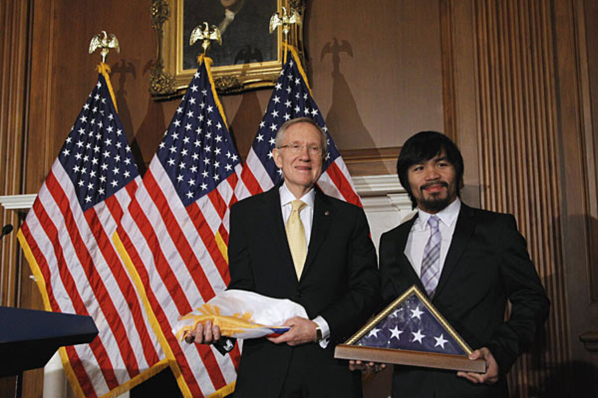 Earlier, Pacquiao roamed the halls of the Capitol as the guest of Reid, a Democrat and long-ago boxer whose recent re-election was no doubt helped by Pacquiao's campaign appearances.