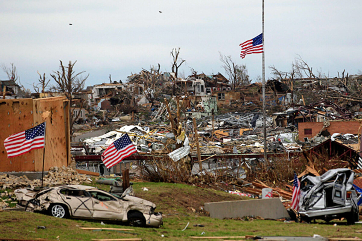 McBroom said she and her daughter were hiding in a closet when the tornado tore their walls and roof away. Her walls gone, McBroom could see the mayhem at Greenbriar.