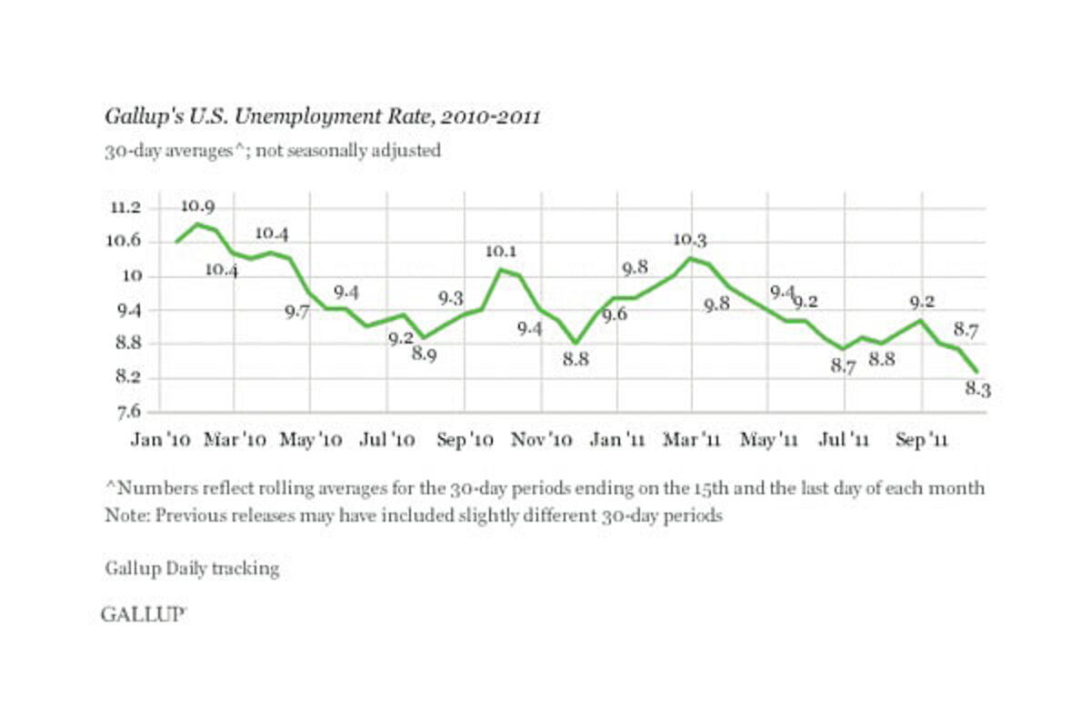 October unemployment rate to fall below 9 percent, predicts Gallup