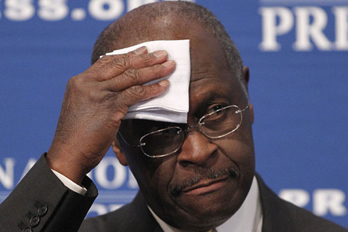 The former Godfather's Pizza chief executive confronted the situation rather than canceling his Washington schedule.
