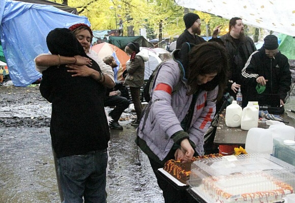 In the hours leading up to midnight, protesters held general assembly meetings where they talked about what to do when the deadline came. They also repeated the main message of the Occupy Wall Street movement of peaceful resistance to income inequality and what they see as corporate greed.