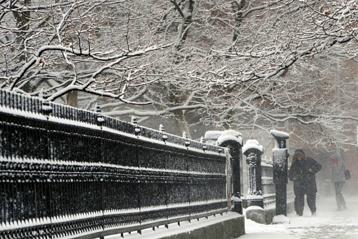 "We go from no snow to a blizzard," said Courtney Taylor of Lewiston, north of Buffalo, holding on to keep her fur-lined hood up.