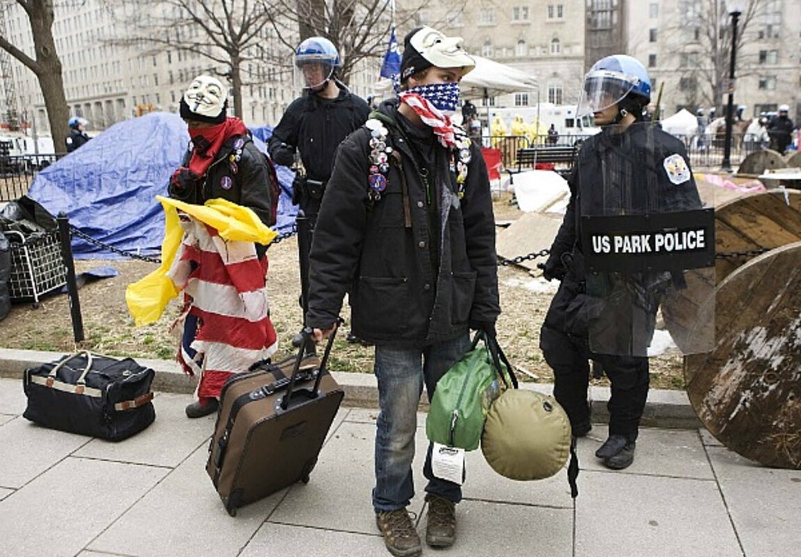 The relationship with police has been generally peaceful, though a daylong standoff in early December over a makeshift wooden building led to more than 30 arrests. About five dozen protesters were later arrested during a mass demonstration that shut down K Street.