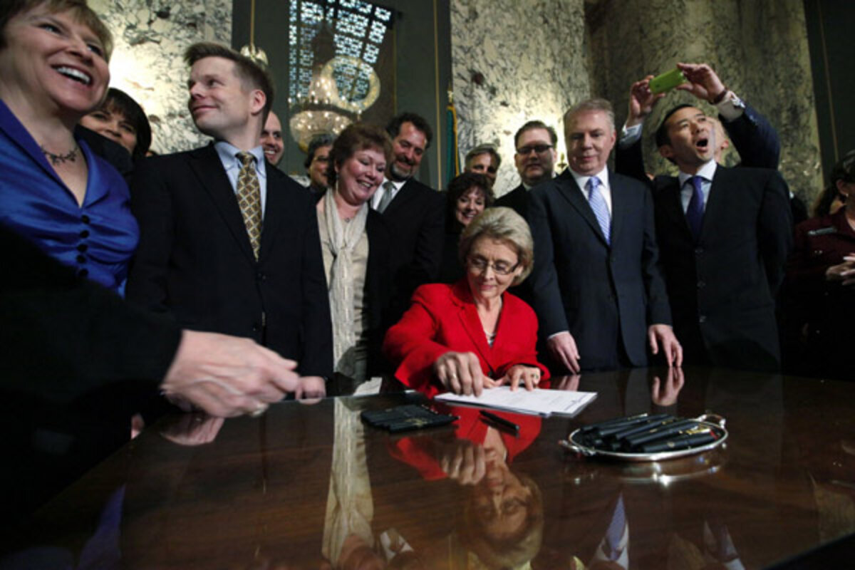 Washington Gov. Chris Gregoire signs gay marriage bill into law