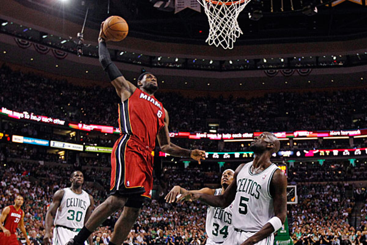 He had 30 points by halftime and spent the night silencing the Celtics crowd and perhaps some of the doubters he somehow still has. He set the tone for the game by making 6 of 7 shots and scoring 14 points in the first quarter, and he made sure the Heat were never challenged from there.