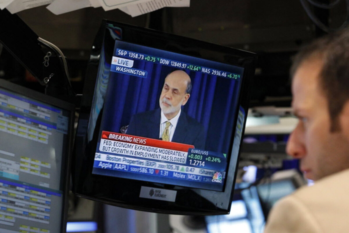 Indexes dipped right after the Fed's announcement came out at 12:30 p.m., then quickly went back to where they were. It was the latest knee-jerk response to news headlines in a stock market that has been buffeted in recent weeks by fears that Europe's 17-nation currency union could rupture.