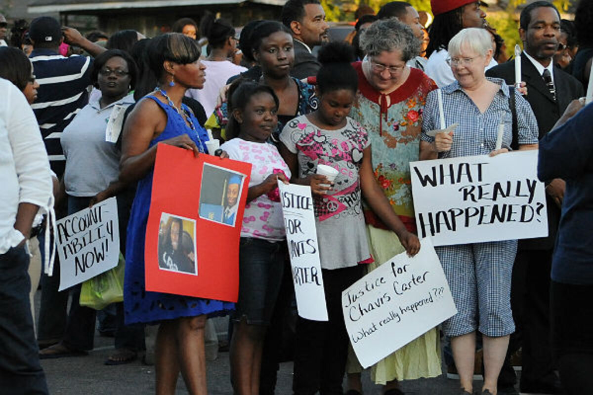 Police have said officers frisked Carter, 21, twice after a traffic stop without finding a gun before he was fatally shot, but the department's internal investigation continues. The FBI also is monitoring the case, and the local branch of the NAACP has called for a thorough investigation into the death of Carter, who was black. Two other men who were in a truck with him during the stop and the two officers who were on the scene are white, according to police.