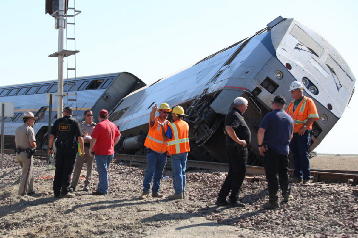 The crash occurred when the driver of the big rig carrying cotton trash failed to yield and hit the train, authorities said. The impact pushed the two passenger cars and the locomotive off the tracks south of Hanford, a farming town.