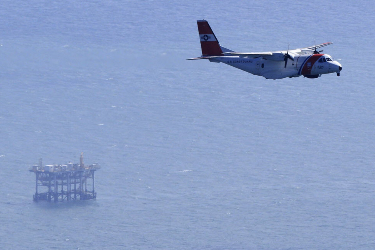 The Coast Guard suspended its search for the missing workers early Saturday evening after three helicopter crews, a Coast Guard cutter and a plane spent the day scanning a 1,400 square-mile聽area around the platform.