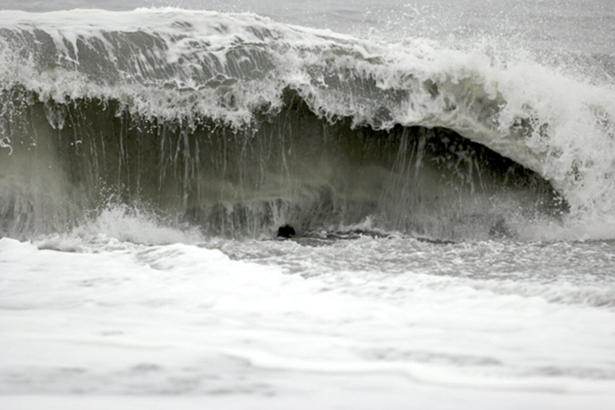 Signs near the beach warned of "sneaker聽waves," the kind that suddenly roar ashore.