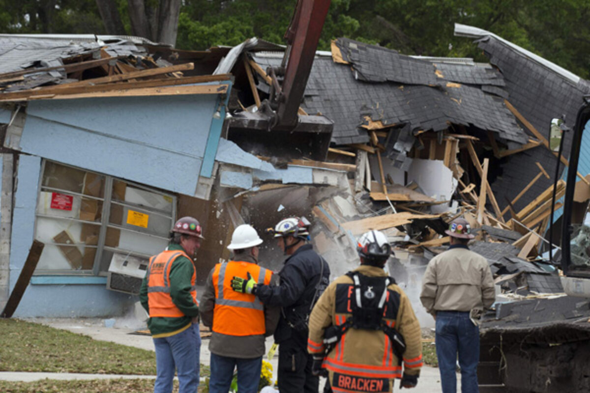 The opening of the sinkhole has been covered by the home, but once emergency officials and engineers can see inside it more clearly, they could begin planning how to deal with it. They also need to decide what will happen to the two homes on either side of the now-demolished house. Experts say the sinkhole has "compromised" those homes, but it's unclear whether steps can be taken to save them.