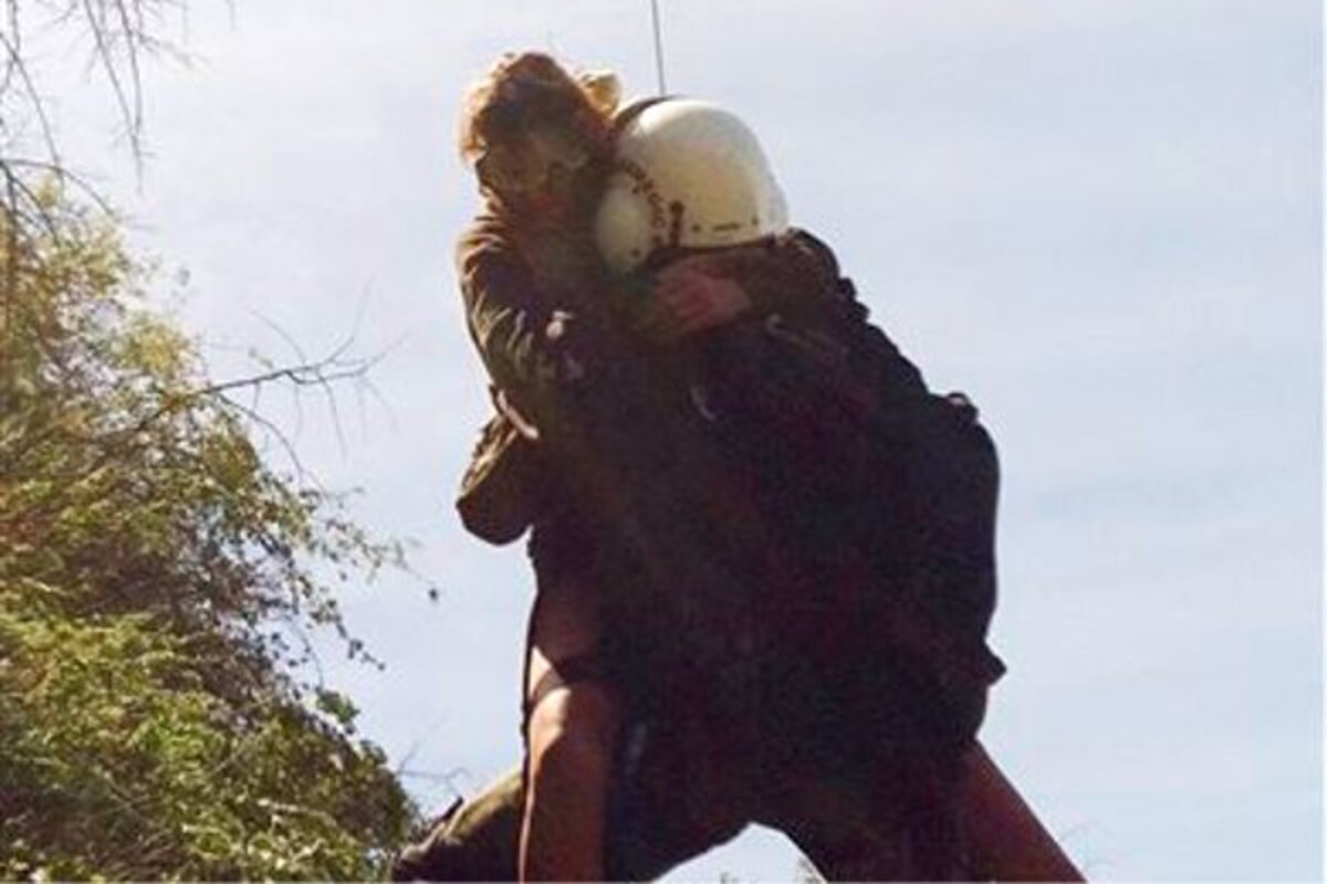 After rescuers found Jack they strapped her into a harness and lifted her into a helicopter that took her to a hospital.