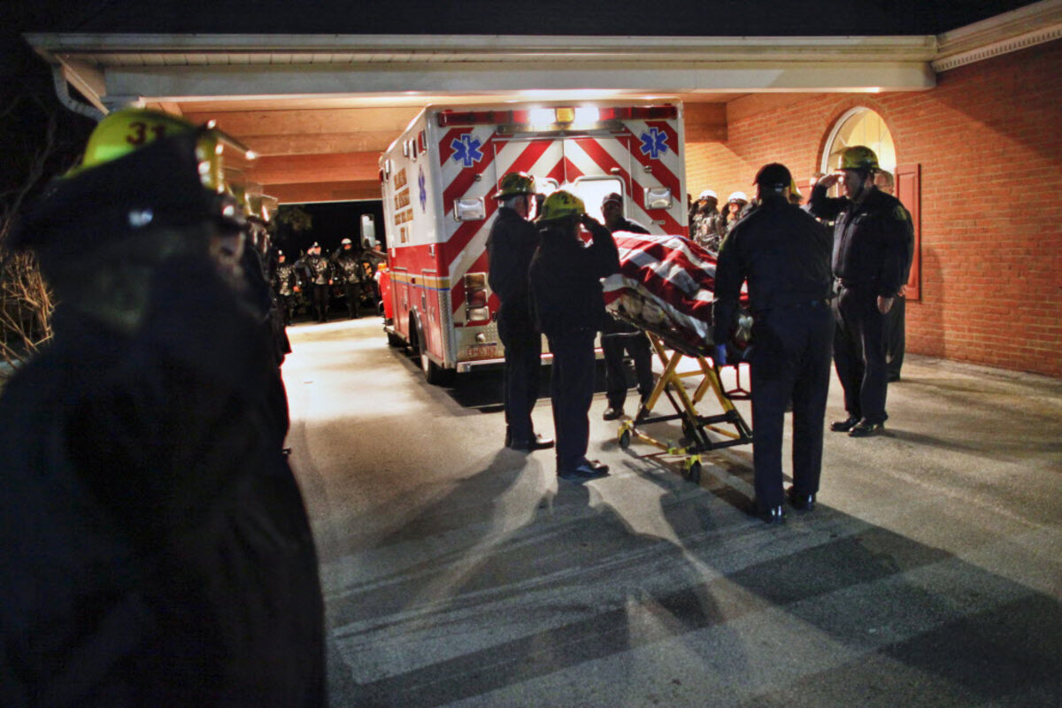 Philadelphia聽firefighters mourned the loss of one of their own in the line of duty for the third time in less than a year, saluting the body of a veteran captain as it was carried from the ruins of a three-story building that collapsed underneath him during a blaze.