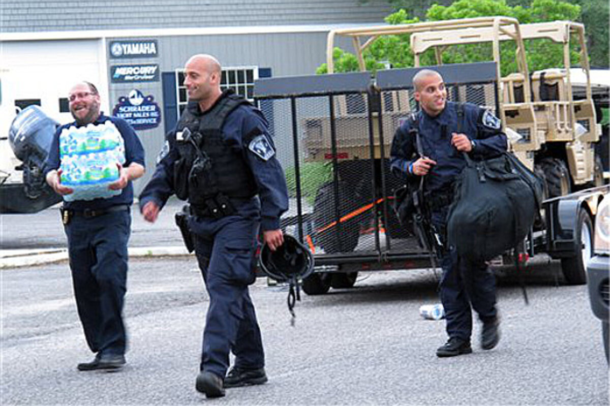 The condominium unit was surrounded by many heavily armed law enforcement officers, including a SWAT team. Shortly after 1 p.m., police removed barricades from the complex and officers wearing body armor and carrying automatic rifles walked slowly back to their vehicles and drove away.