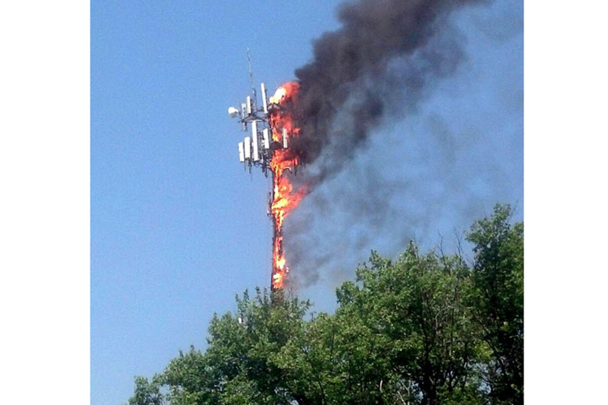 The聽tower聽caught聽fire聽around 11:30 Friday morning while work was being done on it.聽Bensalem聽Township Public Safety Director Fred Harran says welders initially tried to put the聽fire聽out themselves, but the flames spread and they had to rappel down.