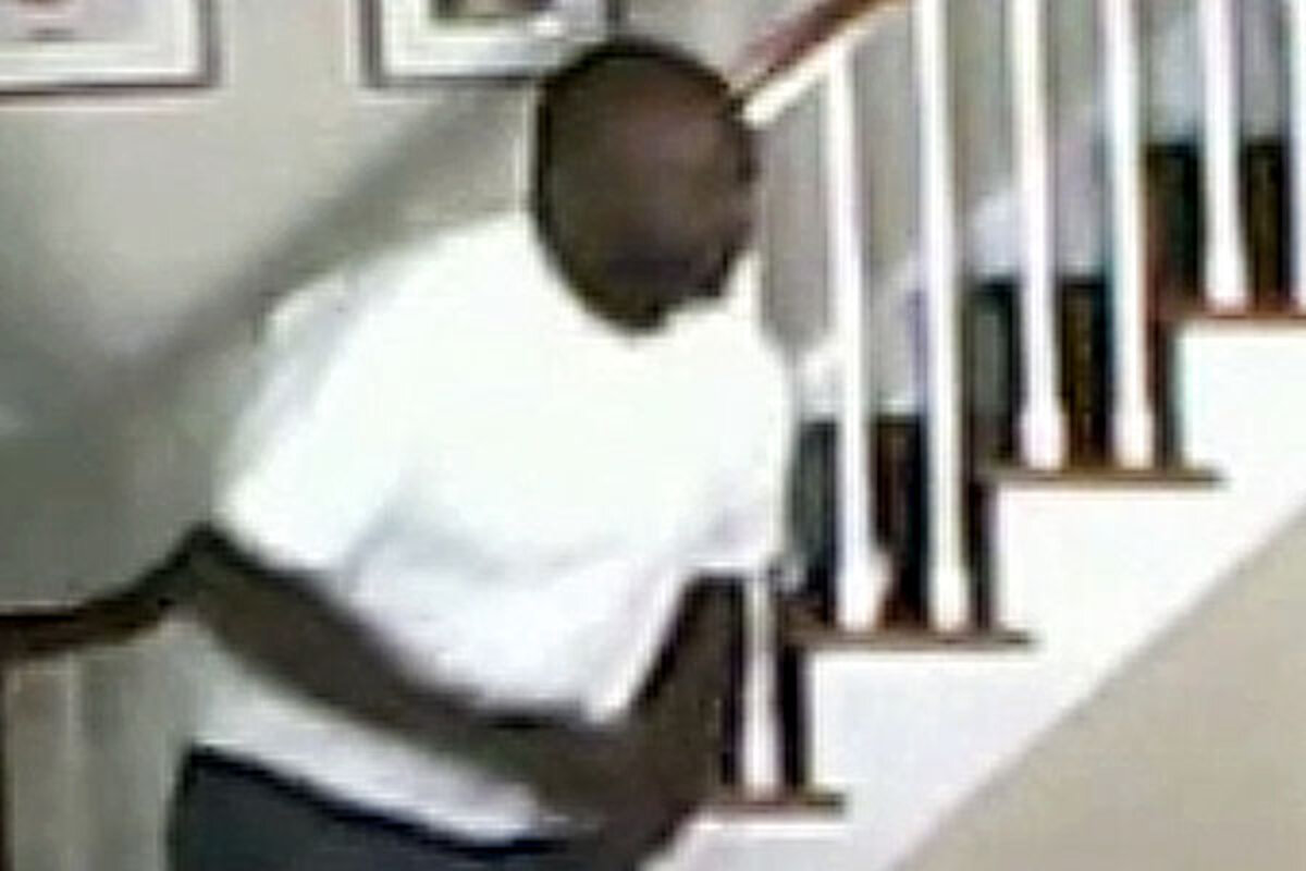 The burglar made three trips upstairs to rifle through the family's belongings, police said, assaulting the woman on the trips back to the first floor, kicking her, punching her and yanking her by the hair.