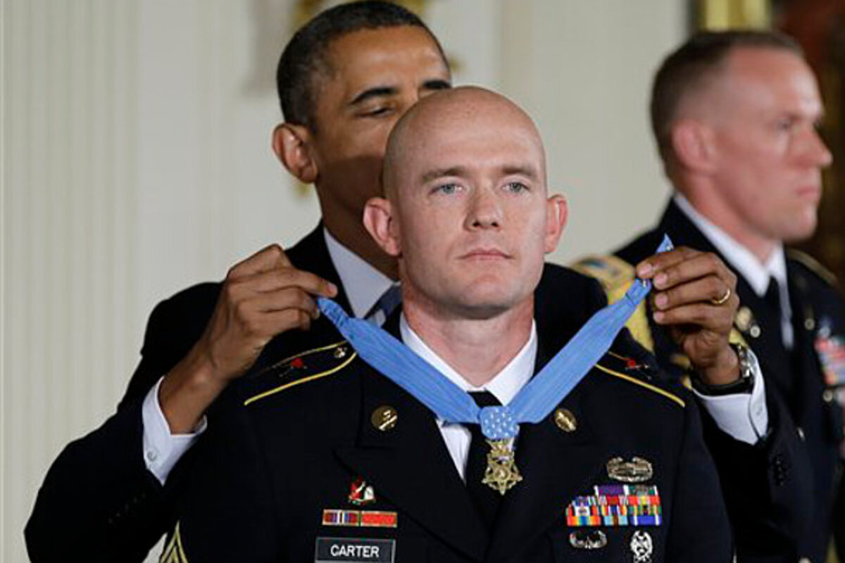 Carter risked his life to save an injured soldier, resupply ammunition to his comrades and render first aid during intense fighting in a remote mountain outpost four years ago.