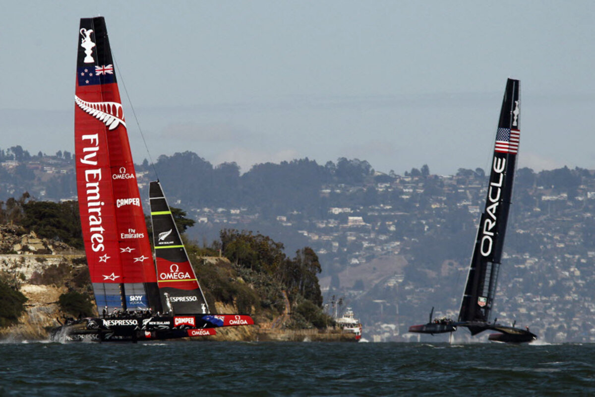 The Kiwis closed to within about 30 yards when the boats crossed on the windward third leg as they zigzagged toward the Golden Gate Bridge.