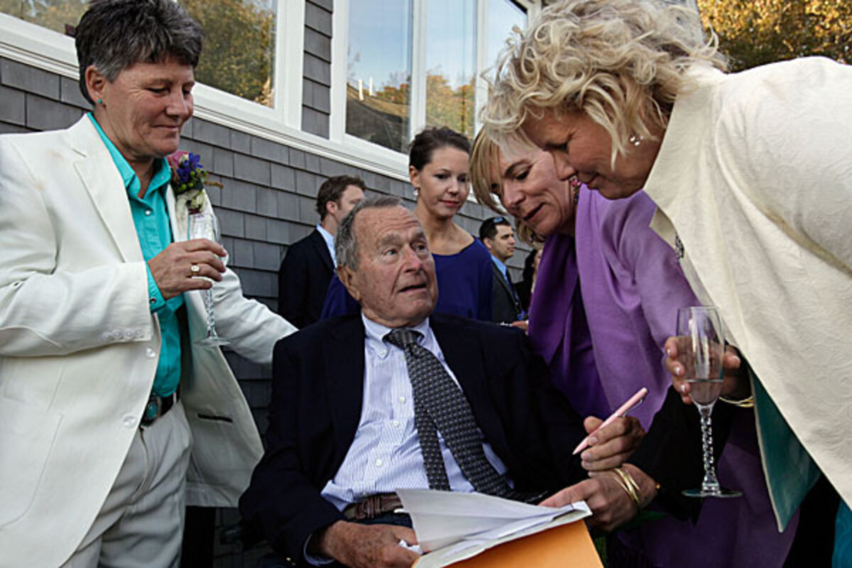 Former President George H.W. Bush and his wife, Barbara, were the official witnesses of a same-sex marriage between two women in Maine this past weekend, a spokesman said on Wednesday.