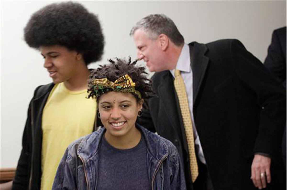 He decried alleged abuses under the police department's stop-and-frisk policy and enjoyed a surge when a federal judge ruled that police had unfairly singled out blacks and Hispanics. The candidate, a white man married to a black woman, also received a boost from a campaign ad featuring their son, a 15-year-old with a big Afro.