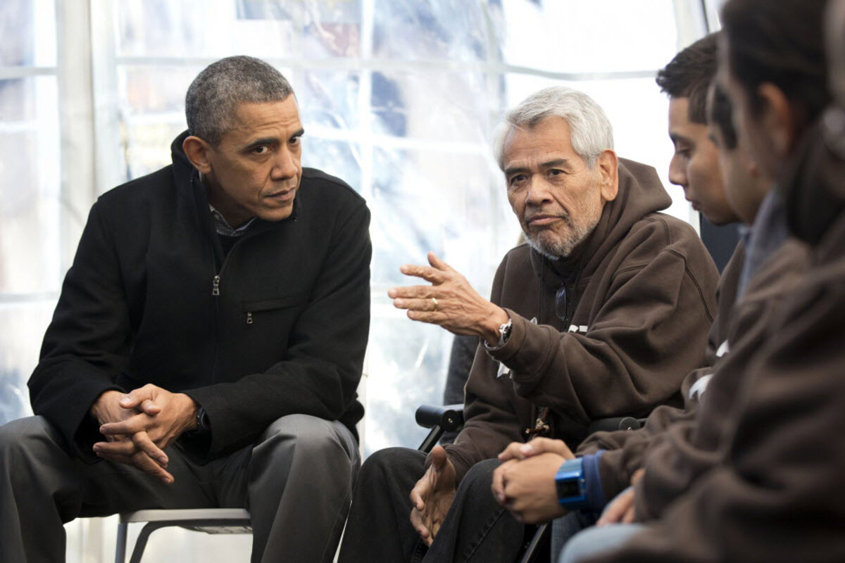 On the day after the US harvest holiday of Thanksgiving, marked by an abundance of food,聽Obama聽stopped in at a heated tent on the National Mall, home to Washington's most famous monuments, where some activists have drunk only water since Nov. 12 in support of聽immigration聽legislation.