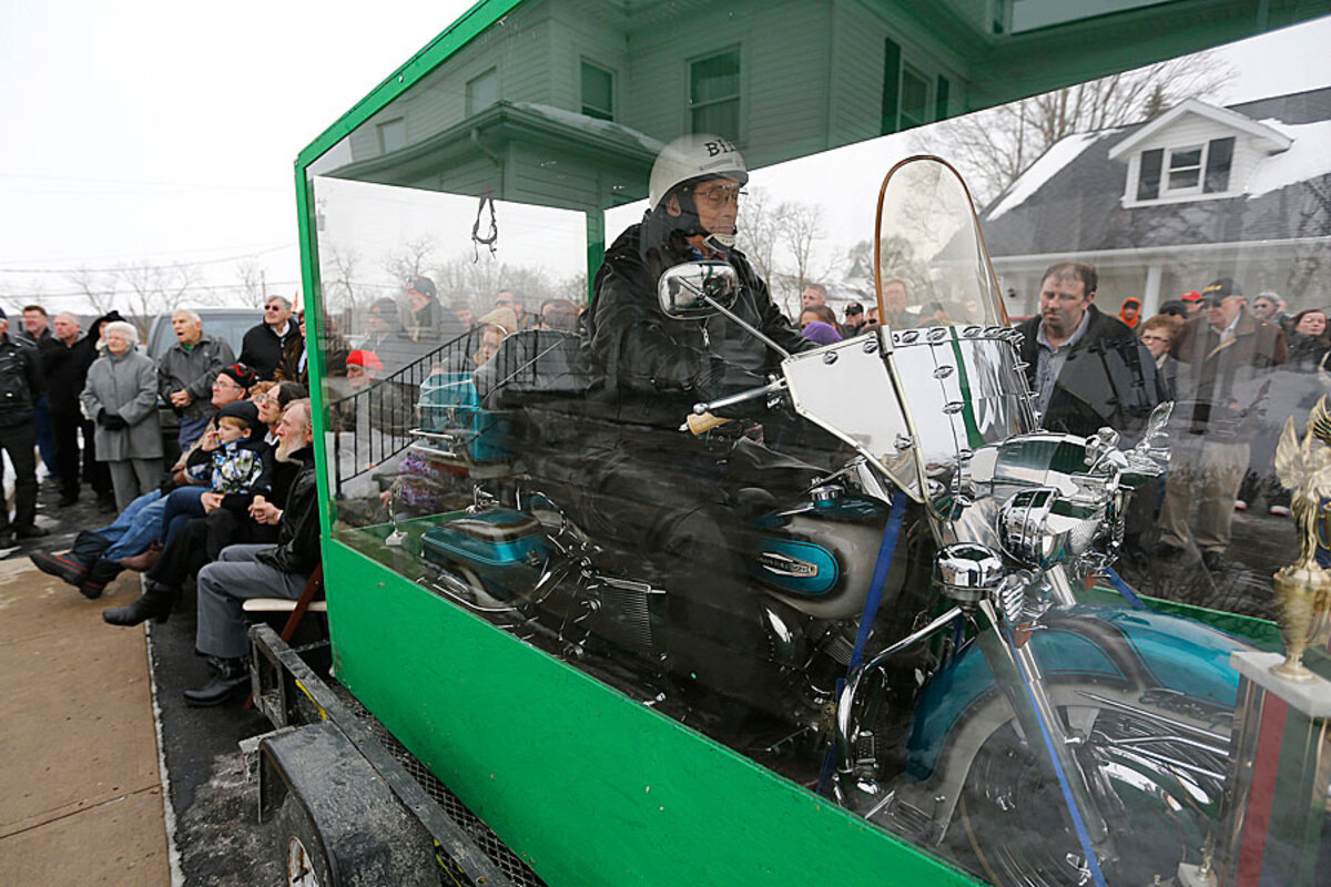 Standley's family said he'd been talking about it for years and liked to take people to the garage to show off the unusual casket his two sons had built for him. He told people he didn't just want to ride off to heaven, he wanted the world to see him do it in the big see-through box.