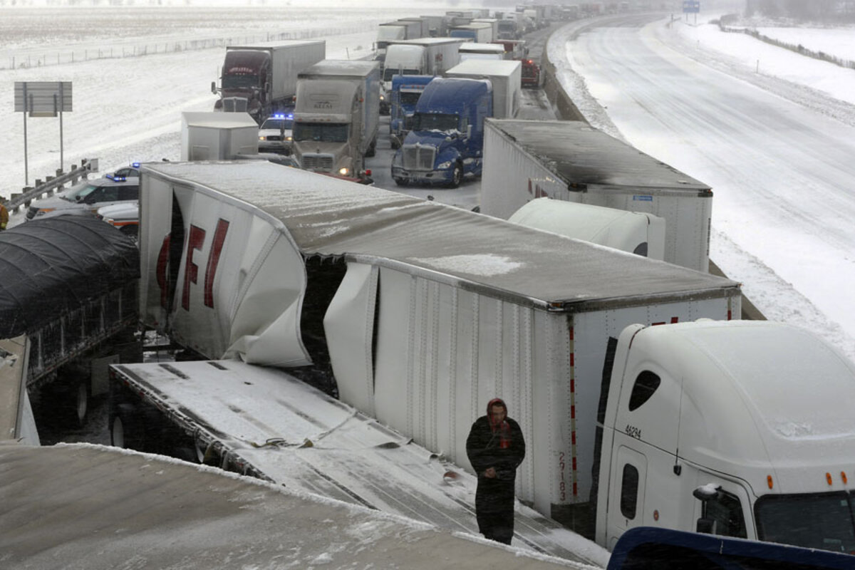 The crashes happened in the turnpike's eastbound lanes near the city of Clyde. Video from the Sandusky Register shows at least a dozen tractor-trailers smashed together near an overpass.