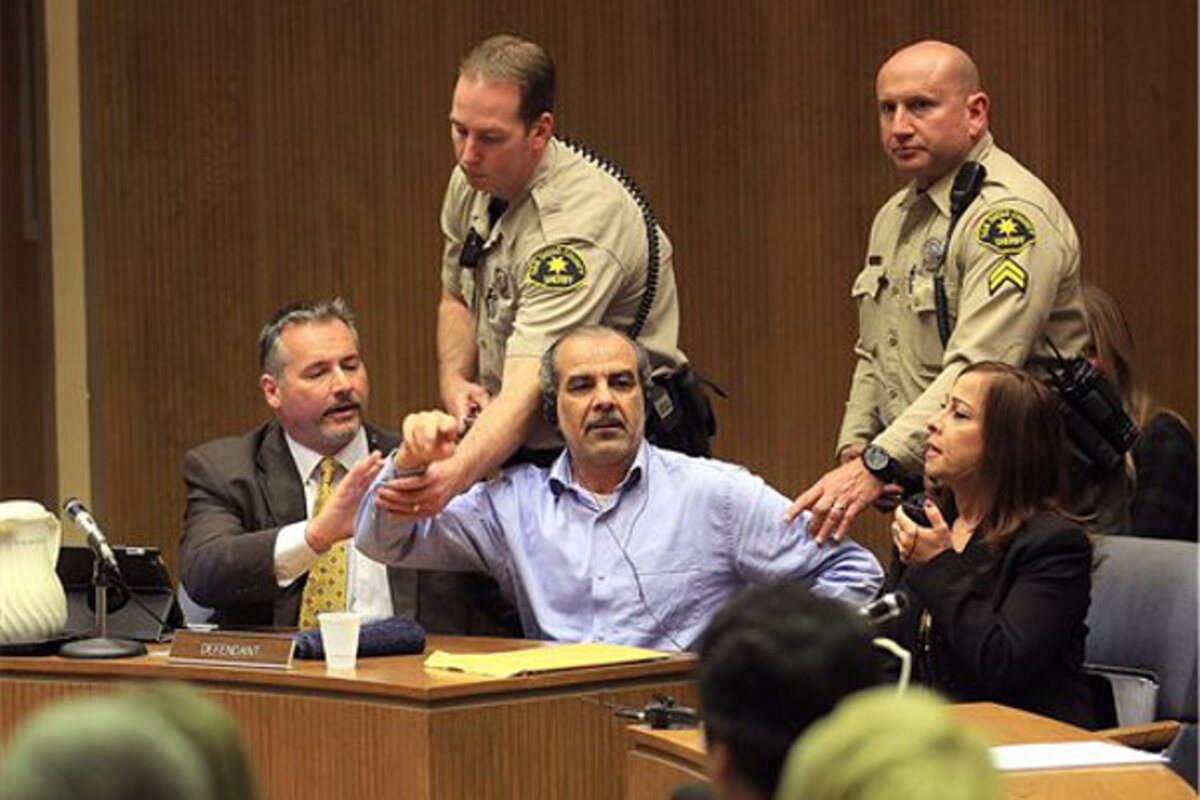 Kassim Alhimidi, 49, shook his head from side to side and wagged a finger as jurors were polled, then chaos erupted in the courtroom when his oldest son stood and shouted obscenities. The son proclaimed his father's innocence before several deputies wrestled him out of the courtroom.