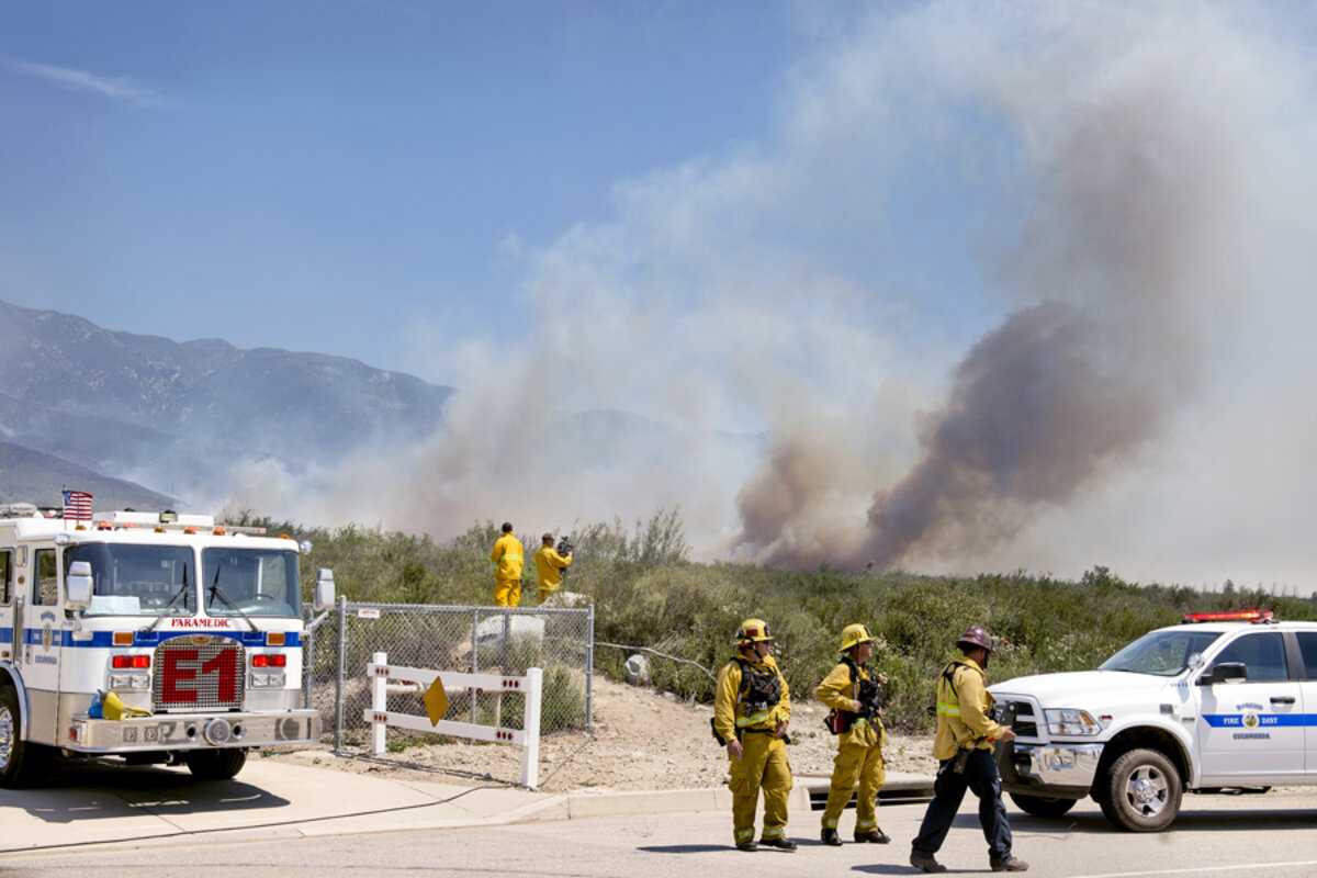The blaze began Wednesday morning and quickly surged through dry grass and chaparral.