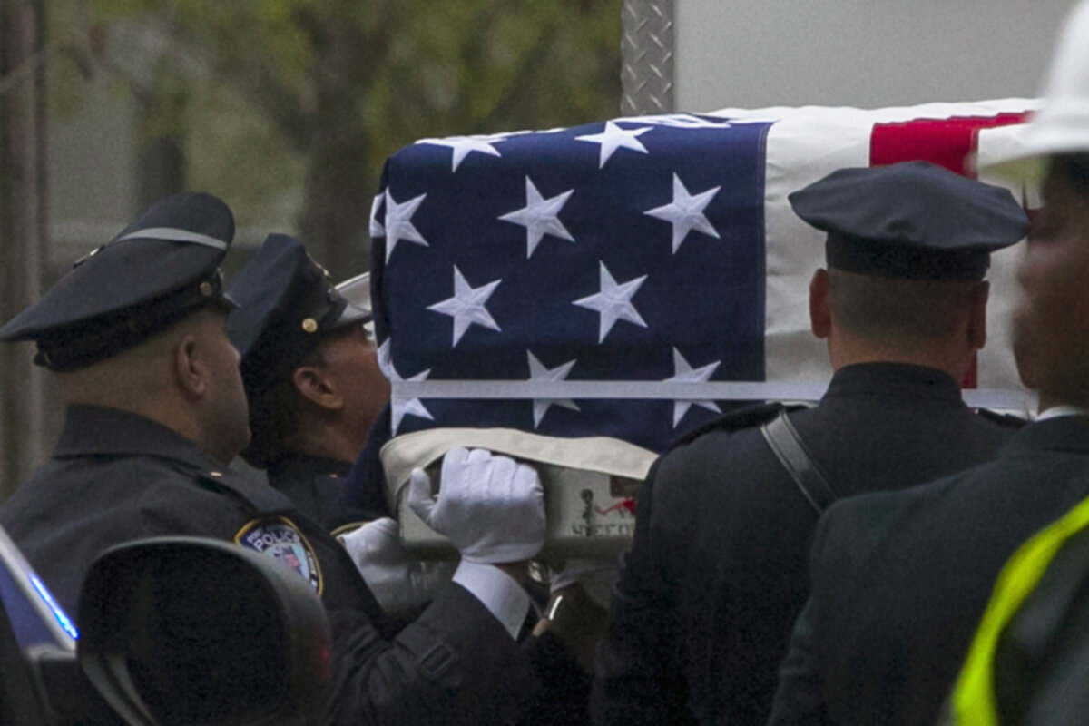 The unidentified remains of those killed in the Sept. 11, 2001 attack on the World Trade Center in New York City were moved into a repository at the bedrock level of Ground Zero on Saturday after a procession through Manhattan streets.