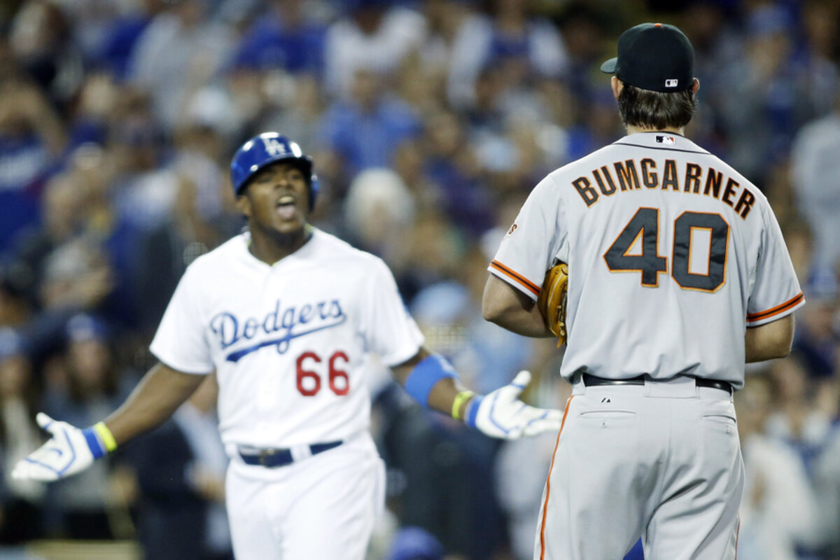 Bumgarner walked toward the third base line and had a few choice words for Puig as he approached home plate. But the hostilities ended there with some quick action by plate umpire Will Little, who intercepted Bumgarner.
