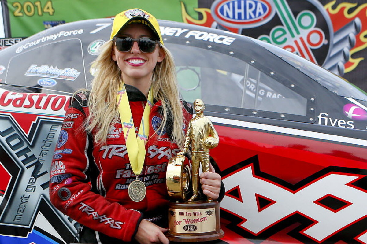 Force is one of 14 female winners in the NHRA Mello Yello Drag Racing Series, a list that started with Shirley Muldowney in Top Fuel in 1976.