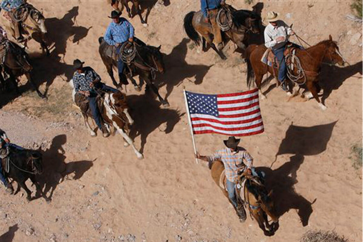 Bundy聽and his supporters, some of them armed militia members, thwarted a BLM roundup of his cattle near Bunkerville in April.