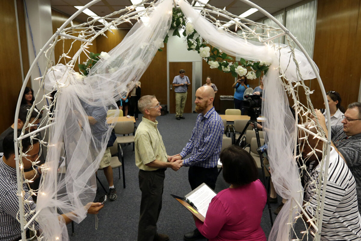 A constitutional amendment approved in 2006 by voters banned gay marriage in Wisconsin, while state law prohibited it in Indiana. Neither state recognized same-sex marriages performed in others states.