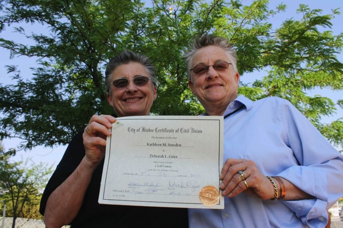 Arizona lawmakers approved a state law barring same-sex marriages in 1996. Seven years later, an Arizona appeals court upheld the constitutionality of the law. Voters in 2008 amended the Arizona Constitution to include a ban.