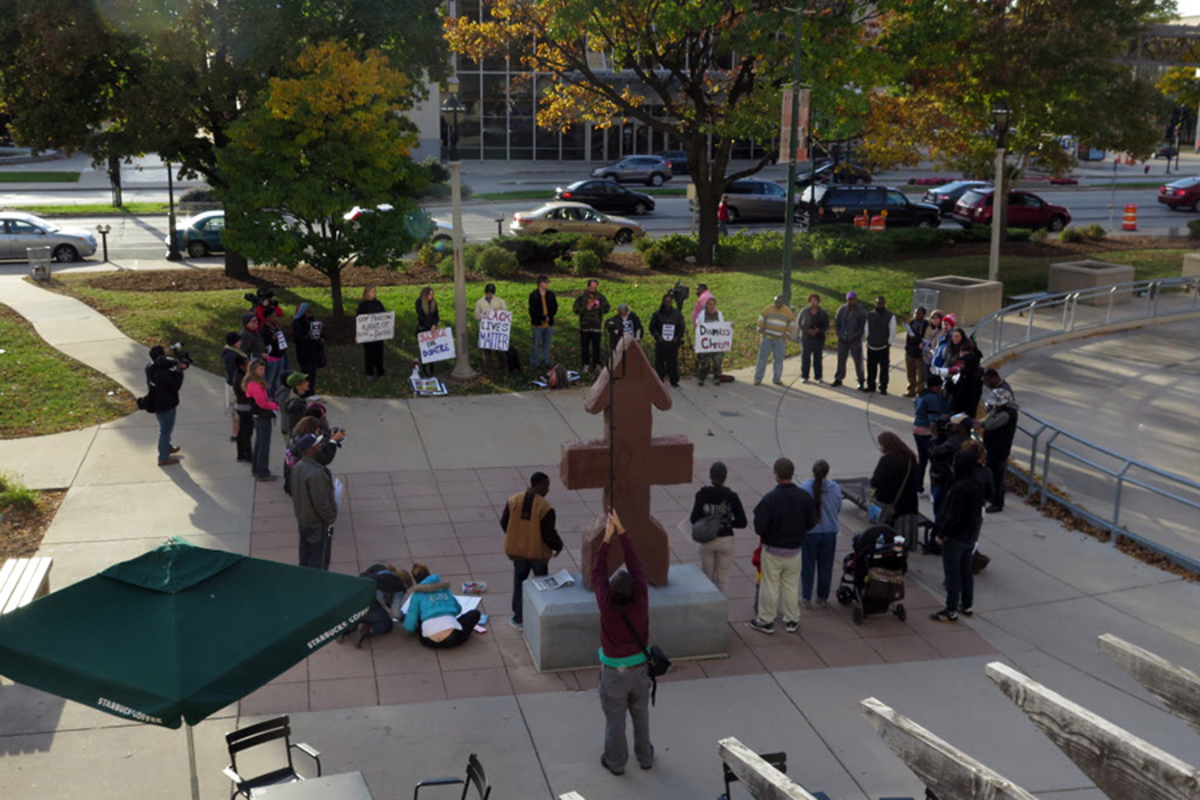 Wisconsin Gov. Scott Walker has said he will call up the National Guard if there is any violent reaction to the prosecutor's decision. Police arrested 74 protesters Friday who blocked rush hour traffic on Interstate 43. On Monday, the state Department of Military Affairs activated its emergency operations center to monitor the situation in聽Milwaukee聽and coordinate activities between any affected state agencies.
