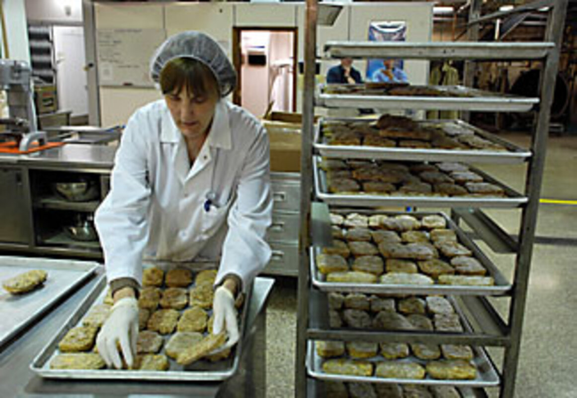The kitchen lab where Kennedy and a number of other food technologists whip up the latest MRE dishes resembles a cross between a school cafeteria kitchen and a third world operating room. There are walk-in freezers, multiple meat slicers, a retorting machine bigger than a mid-size car, and lab coats and hair nets (for both head and facial hair) are required.