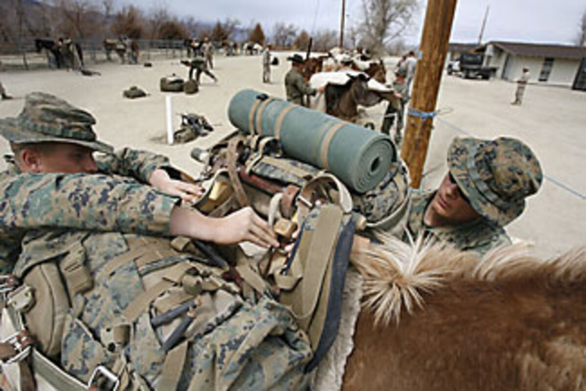 Tucked at the base of a small mountain in the eastern Sierras is a makeshift paddock where a handful of US Marine Corps instructors reach deep into the history of warfare to give their charges a critical skill when they deploy to Afghanistan: how to pack a mule.