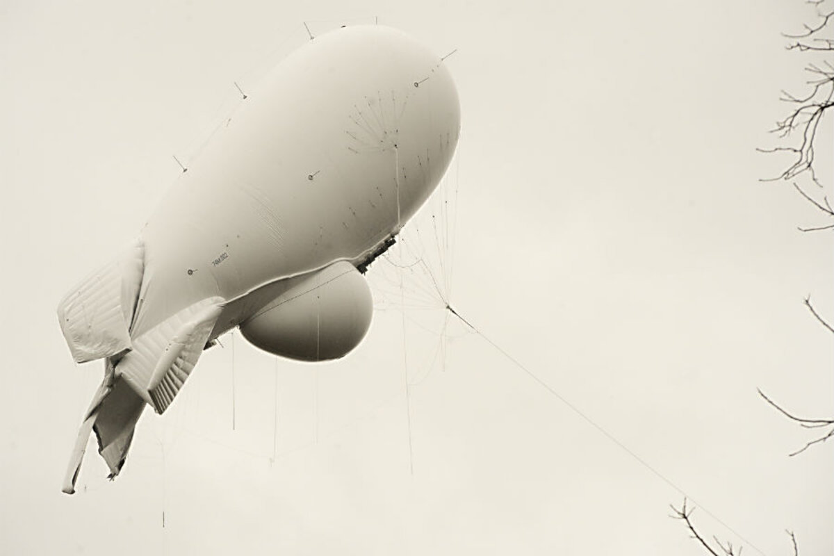 The blimp is the kind used extensively in the Iraq and Afghanistan wars to provide ground surveillance around U.S. bases and other sensitive sites. It is tethered to the ground when in use.